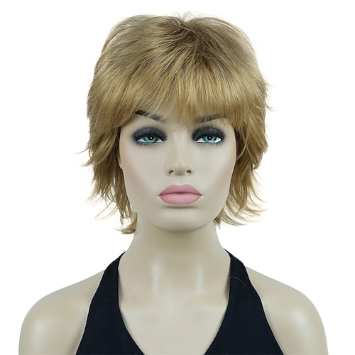 parrucche sintetiche ondulate ondulate a strati corti