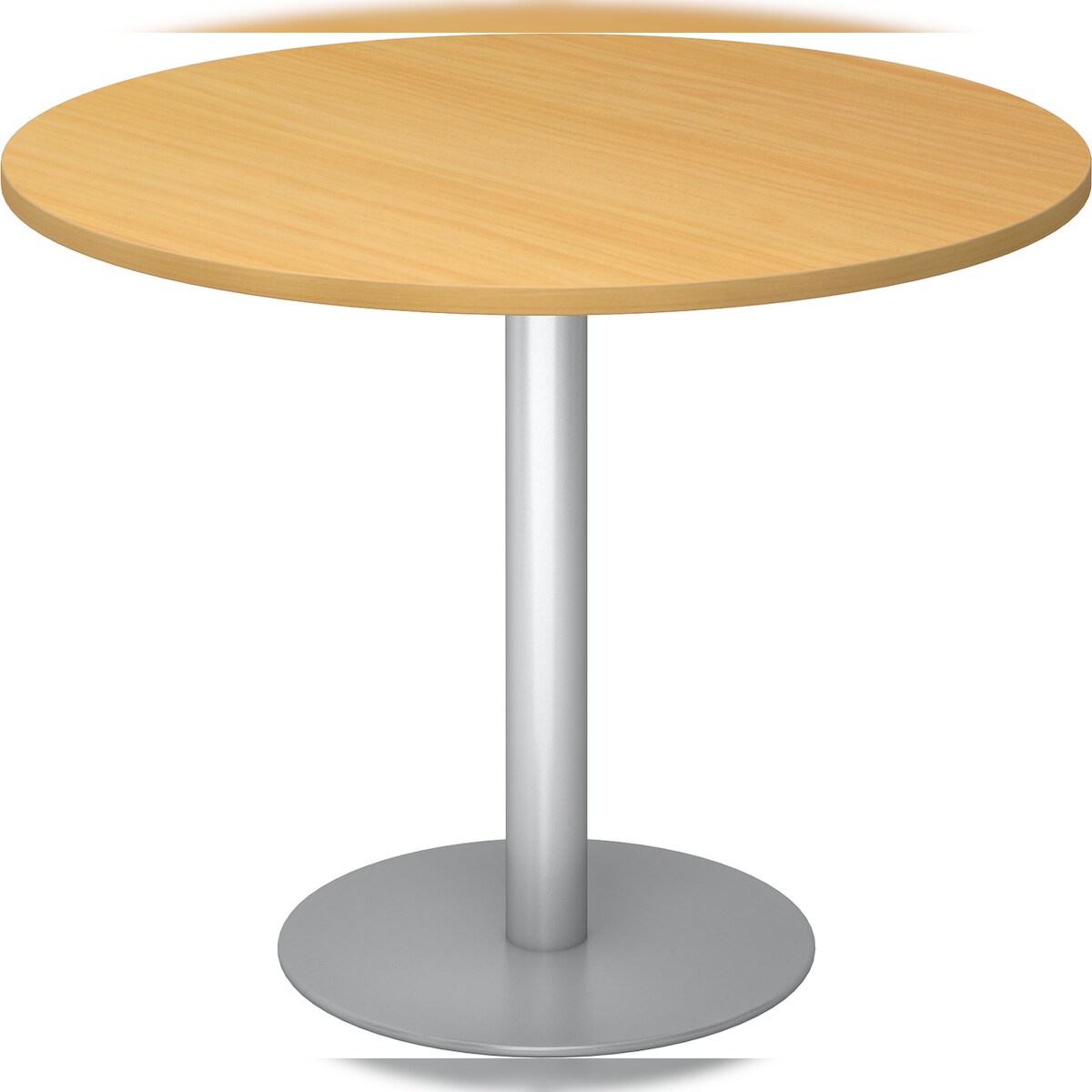 bümö Besprechungstisch, Esstisch klein, Tisch rund 100 cm - kleiner Esstisch Buche, Rundtisch Esstisch 2 Personen mit Holz-Platte, Säule aus Metall