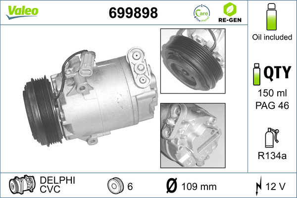 VALEO Kompressor, Klimaanlage AUSTAUSCHTEIL 699898 12V für VAUXHALL OPEL 1854119 R1580052 6854045