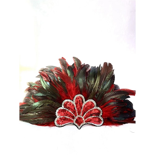 Carnevale 2026 Accessori per Samba di Rio Copricapo di piume marrone arancione per donne - Copricapo da showgirl con paillettes dorate - Accessorio per Mardi Gras Carnevale in Brasile