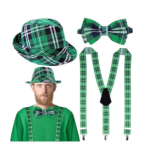 Set di accessori per feste irlandesi per uomo, donna e bambino, con cappello a quadri verdi e papillon per il giorno di San Patrizio