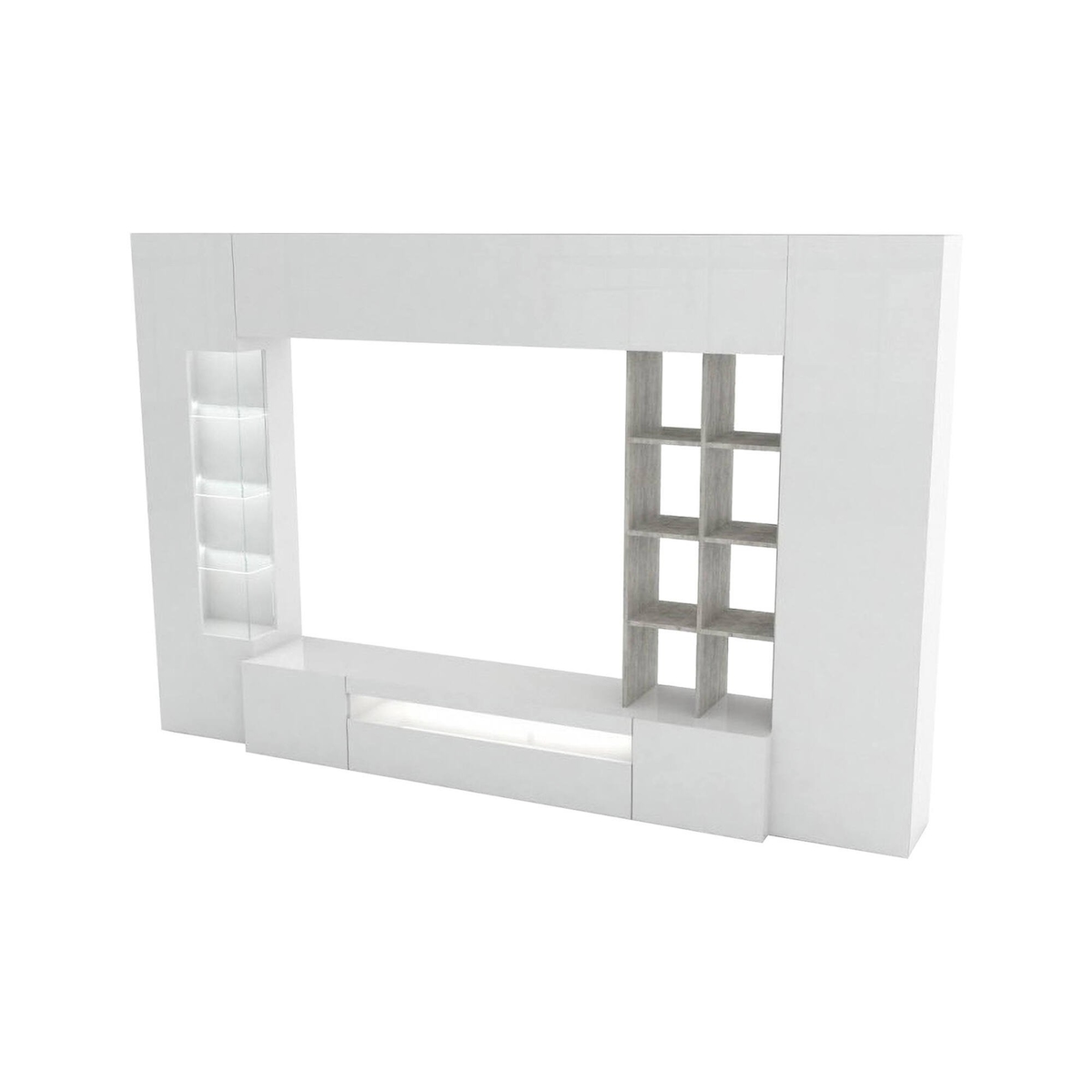 Dmora Wohnzimmermöbel Iago, TV-Ständer Wohnzimmer-Set, Mehrzweck-Wohnzimmermöbel, 100% Made in Italy, cm 290x40h192, glänzend weiß und Zement
