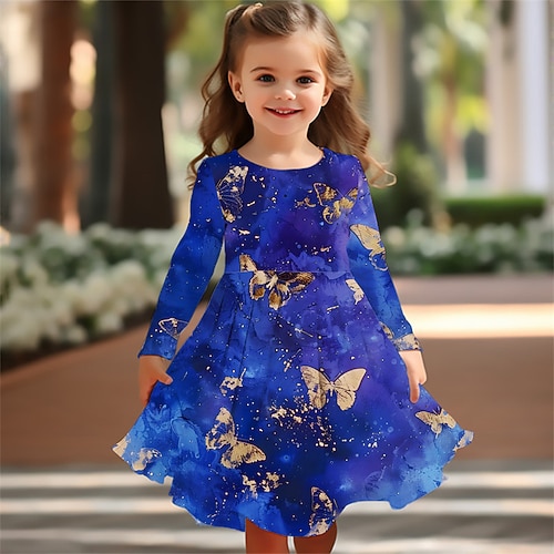ragazze' 3D Farfalla Abito Manica Lunga Estate Primavera Vacanza Quotidiano Ferie Principessa Bello Dolce Bambini 4-12 Anni Vestito Casual Abito a trapezio Lunghezza al ginocchio Vestibilità regolare