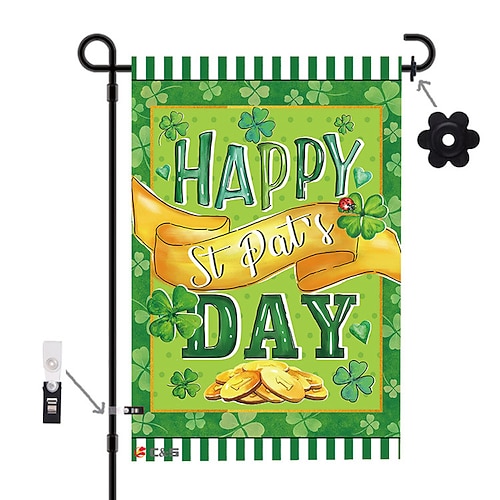 bandiera da giardino per il giorno di San Patrizio, decorazione primaverile per il cortile, design con trifoglio irlandese, bandiera per feste di Natale per giardino esterno, decorazioni per la festa