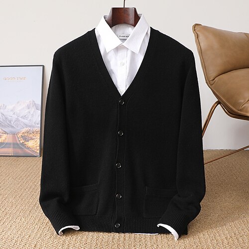 Per uomo Felpa Maglione di lana Cardigan A Coste Maglia Top Regolari Cardigan con Bottoni Lavorato a maglia Semplice Scollo a V Moda Contemporaneo Casuale Abbigliamento quotidiano Abbigliamento