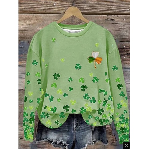 Felpa a maniche lunghe da donna di San Patrizio grafica shamrock casual colletto tondo top regolare abbigliamento quotidiano verde chiaro verde primavera autunno inverno