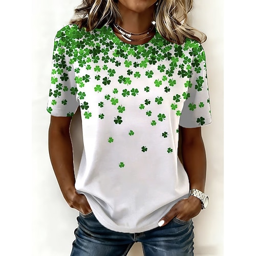 T Shirt da donna per il giorno di San Patrizio con grafica trifoglio casual a maniche corte girocollo top regolari stampa quotidiana bianco verde estate primavera