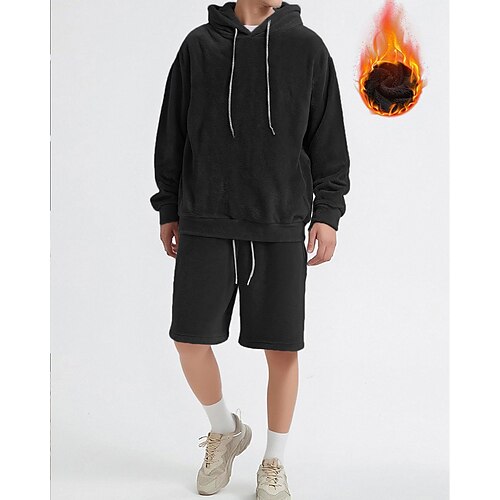 Per uomo Felpa con cappuccio Tuta da Ginnastica Felpa con cappuccio e pantaloncini Impostato Felpa con Cappuccio All'aperto Vacanza Quotidiano Coulisse Semplice Blu Nero Marrone Abbigliamento sportivo