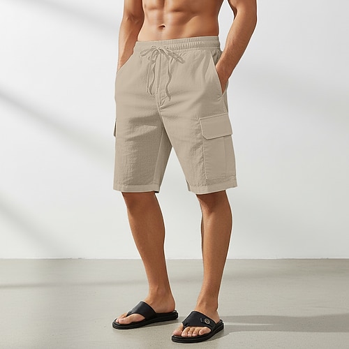 Per uomo Pantaloncini cargo Shorts Shorts di Lino Pantaloncini Estivi Shorts da Spiaggia Coulisse Elastico in vita Multi-tasche Semplice Traspirante Lunghezza al ginocchio All'aperto Spiaggia Vacanza