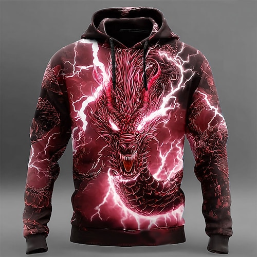 Per uomo Drago Stampa 3D Felpa con Cappuccio Felpa 3D Fantasia Manica Lunga Girocollo Regalo Club Abbigliamento casual alla moda Rosso Blu Viola Verde Coulisse Autunno Inverno progettista S M L XL