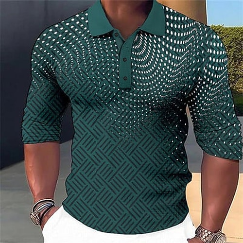 Per uomo Astratto Geometrico Polo Manica Lunga Magliette polo Bavero Casual All'aperto Streetwear Athleisure Abbigliamento quotidiano Stampa 3D Bottoni Primavera Autunno Inverno Nero Bianco Verde