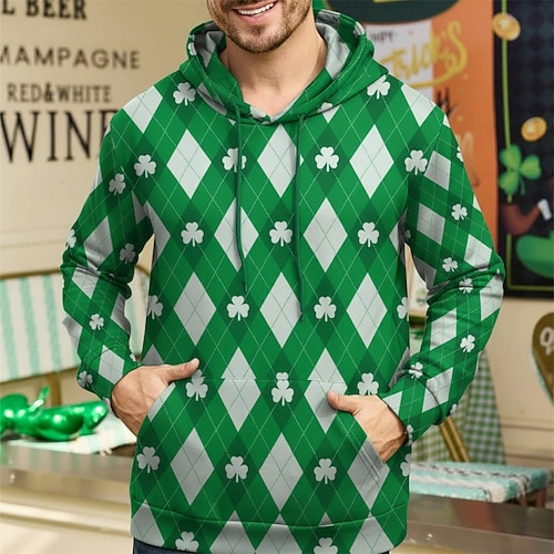 San Patrizio 2026 Trifoglio Irlandese fortunato Carnevale Felpa con cappuccio Innovativo Divertente Adulti Per uomo Giorno di San Patrizio Casuale Feste Costume di Carnevale facile Vestirsi