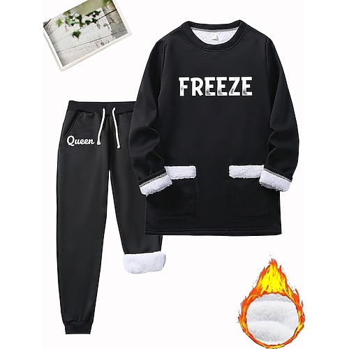 Per donna Caldo Quotidiano Set da due pezzi Tuta Set di Pantaloni Manica Lunga Girocollo Lettera Coulisse Stampato Casuale Quotidiano Nero Rosa scuro Blu Autunno Vestibilità regolare