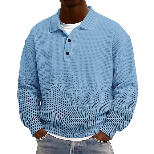Per uomo Geometrico Blocco di colori Magliette Polo a Nido d'Ape Testurizzato Manica Lunga Magliette polo Bavero Casual Athleisure Abbigliamento quotidiano Stampa 3D Primavera Autunno Inverno Blu Blu