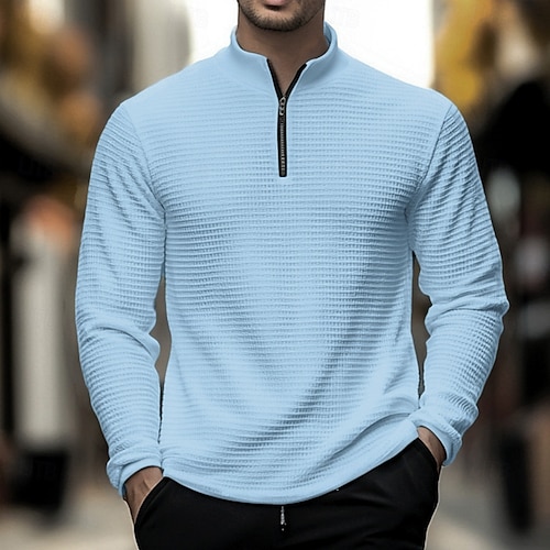 Per uomo Polo con zip Testurizzato Casuale Ferie Bavero Zip a un quarto Manica Corta Moda Essenziale Semplice Zip a un quarto Estate Primavera Vestibilità aderente Blu Nero Bianco Cachi Grigio Polo