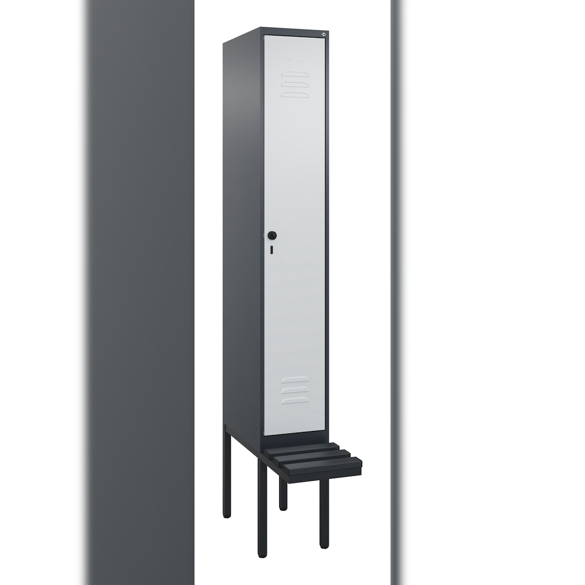 C+P Spind Classic PLUS, Buche untergebaute Sitzbank 1 Abteil, HxBxT 212x40x82cm, Zylinderschloss, Anthrazit von PROREGAL