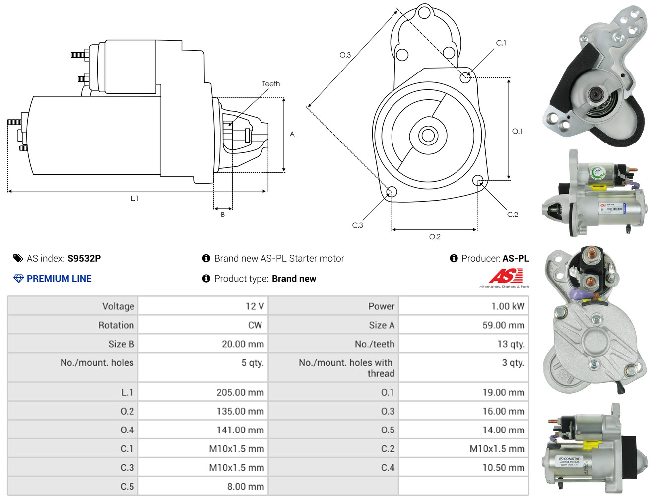 AS-PL Starter S9532P 12V für RENAULT FORD 23300-8820R AMKR3S-11000-AA