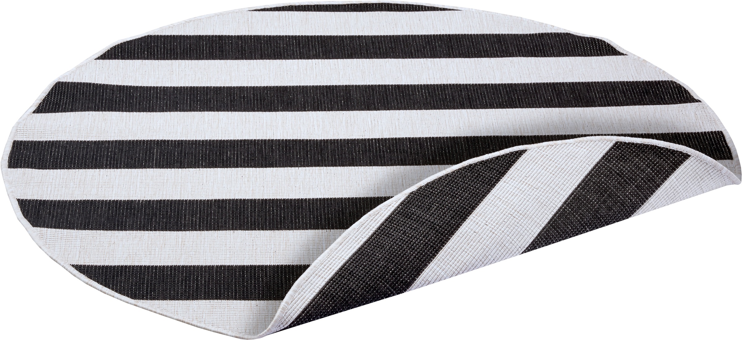 Teppich MY HOME "Alan", blau (night), H:5mm Ø:200cm, Kunstfaser, Teppiche, Wendeteppich, Streifen, Scandi, wetterfest, In- und Outdoor geeignet