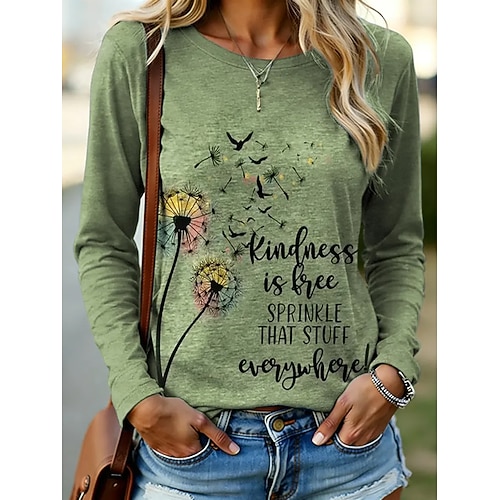 Per donna Maglietta Grafico Dente di leone Moda Elegante Casual Manica Lunga Girocollo Top Regolari Quotidiano Weekend Stampato Viola Verde Estate Primavera