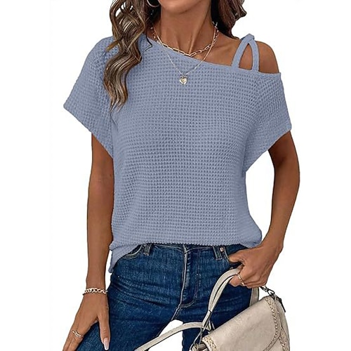 Per donna Tunica Tinta unica Elegante Vintage Essenziale Manica Corta Girocollo Top Regolari Quotidiano Giallo Blu Arancione Estate