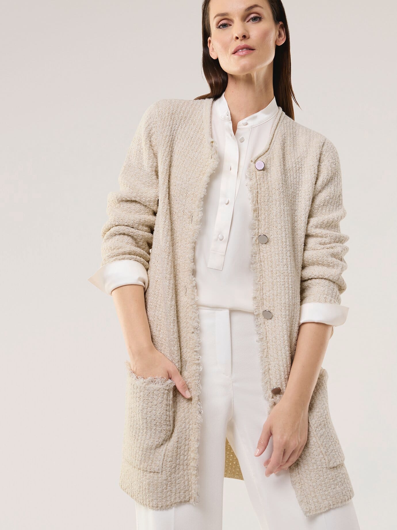 Walbusch Damen Fancy Long Strickjacke Beige