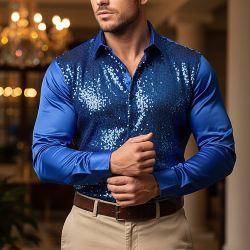 Per uomo Camicia Camicia in raso Camicia elegante Camicia con Bottoni Camicia da Ballo Sfumatura Feste Matrimonio Nero Giallo Rosso Blu Manica Lunga Collo ripiegato Tutte le stagioni Abbigliamento