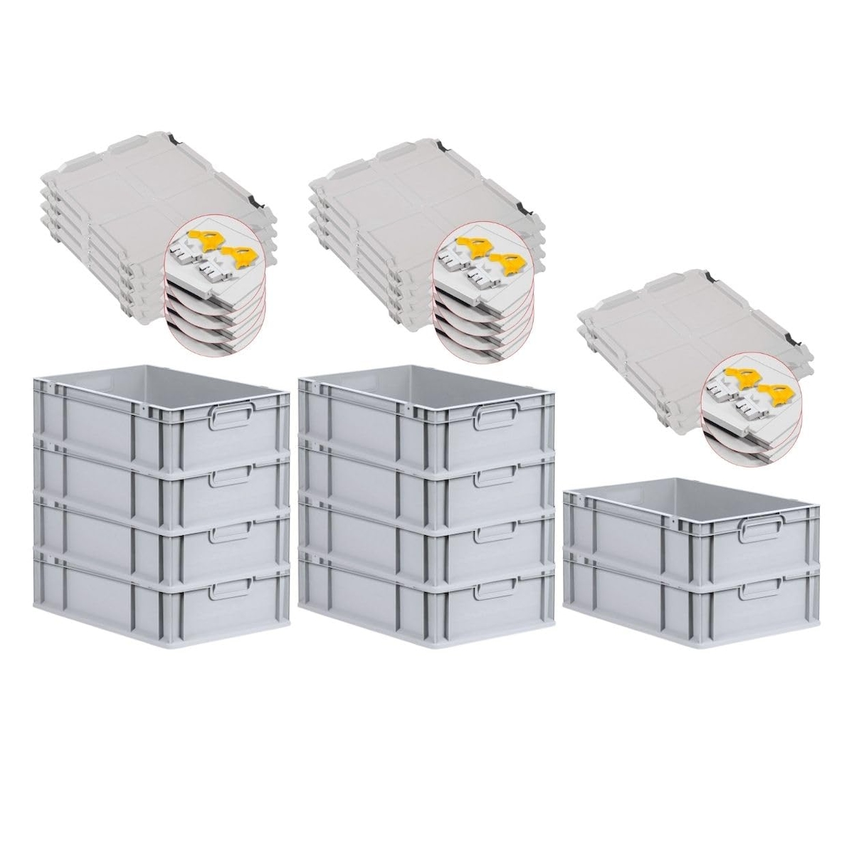 PROREGAL SuperSparSet 10x Eurobox NextGen Economy mit Scharnierdeckel & roten Verschlüssen, Griffe offen, HxBxT 32x40x60cm, 65L, Eurobehälter, Box