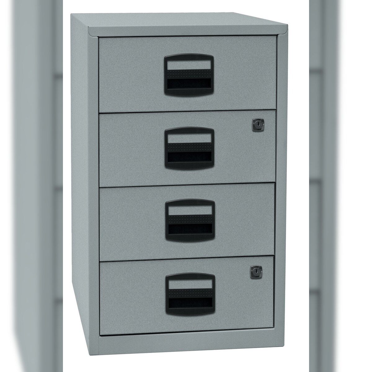 Bisley Home Beistellschrank mit Schloss aus Stahlblech, 4 Universal-Schubladen abschließbar - Büroschrank für DIN A4 Dokumente, Kleinteile &
