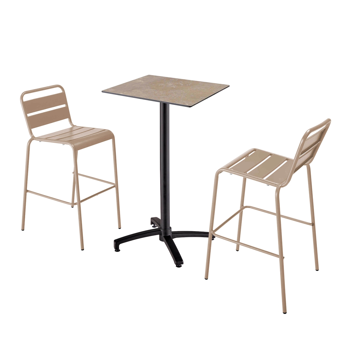 Oviala Business Set aus Stehtisch mit beigem Marmorlaminat und 2 taupefarbenen Stehstühlen