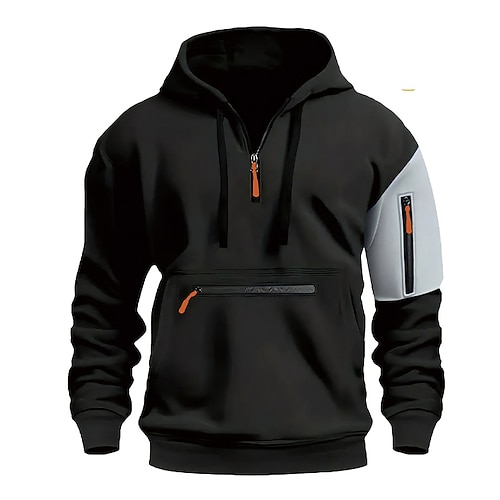 Per uomo Felpa con cappuccio Felpa con cappuccio e zip corta Felpa con cappuccio in pile Felpa con cappuccio tattica Nero Bianco Blu marino Cachi Grigio chiaro Con Cappuccio Semplice Cerniera Mezza