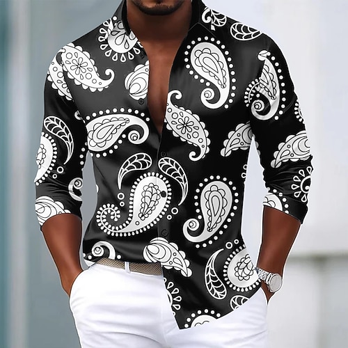 Per uomo Paisley Stampa Floreale Etnico Camicia Camicia in raso Camicia elegante Manica Lunga Vintage Retrò Vacanza Abbigliamento Quotidiano Estate Primavera Autunno Collo ripiegato Stampa 3D Camicie