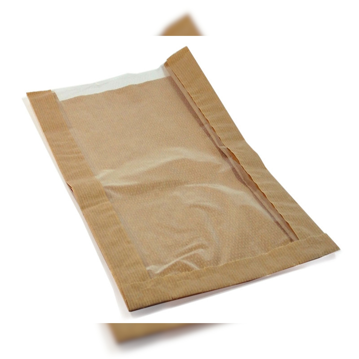 VEPATIM 1000x Papierfaltenbeutel für Gebäck 18 + 6 x 32 cm mit Fenster 13cm
