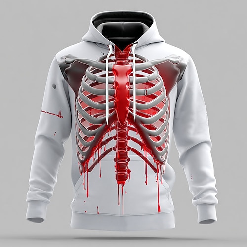 Per uomo 3D Scheletro Felpa con Cappuccio Felpa Punk Esagerato Gotico Casual Manica Lunga Girocollo Con Cappuccio Club Abbigliamento casual alla moda Rosso Blu Arancione Verde Coulisse Autunno Inverno