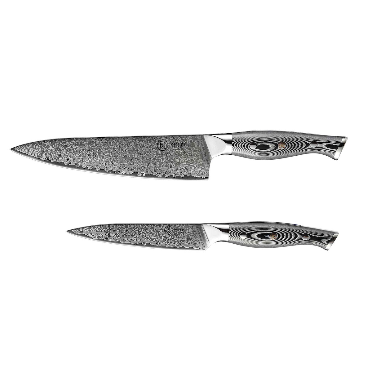 Muxel 2-tlg Messer Set Damast V10 Edelstahl 62 Lagen Kochmesser und Gemüsemesser extra scharf V - Kante für Links- und Rechtshänder