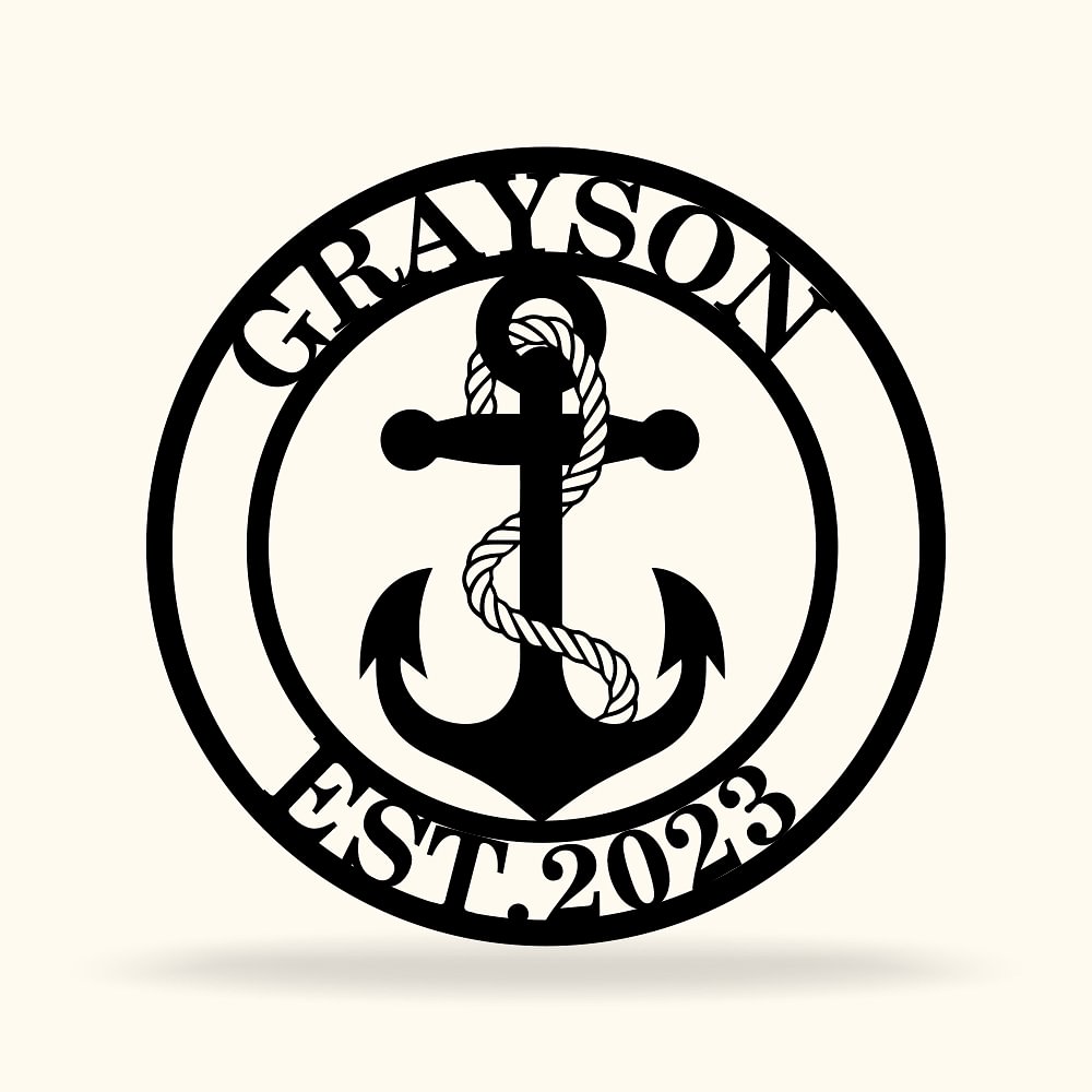 Segno personalizzato del nome dell'ancora in metallo nautico per il capitano pescatore navigatore