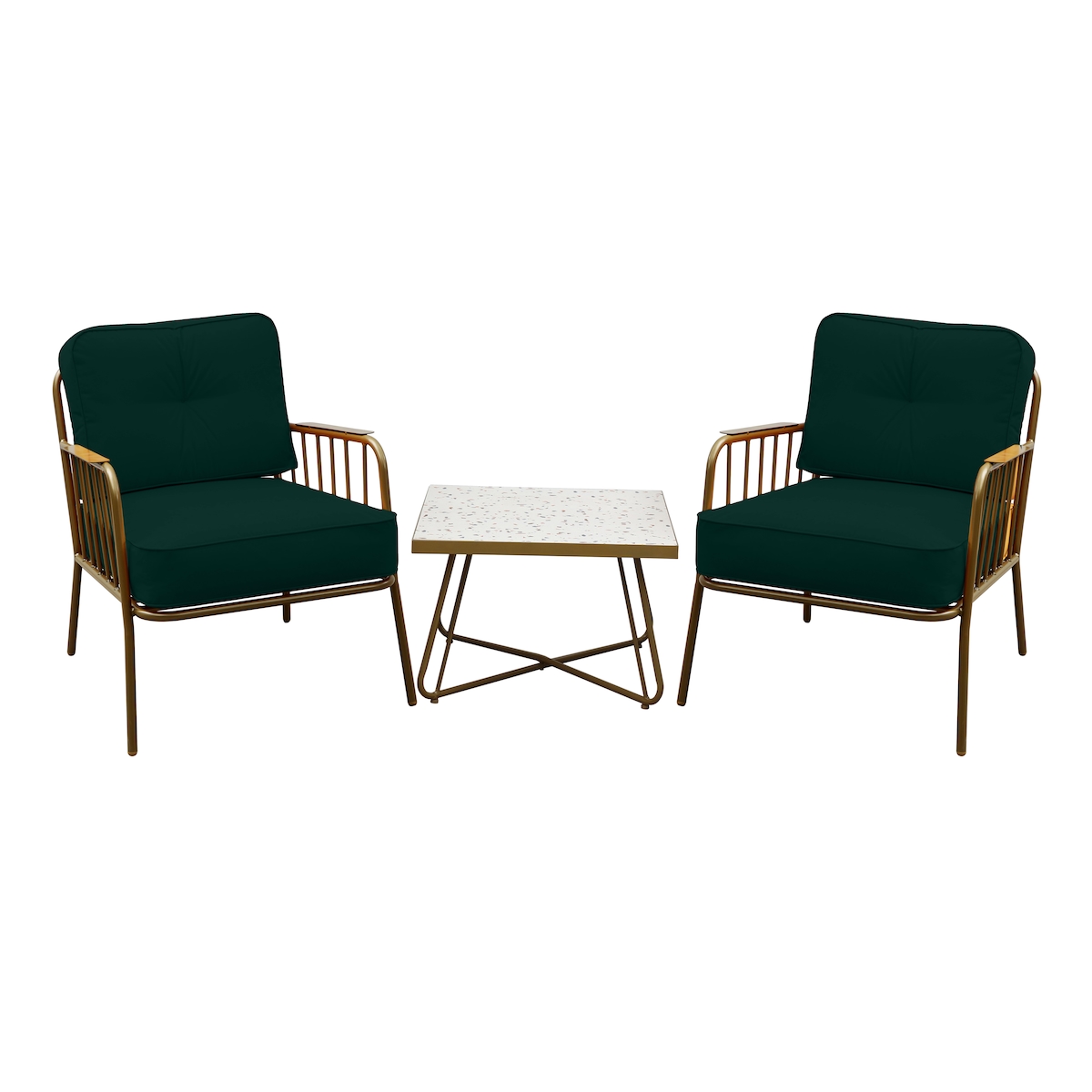 METRO PROFESSIONAL Outdoor Sofa Lounge-Set, 3-tlg., Stahl/Polyester, 2 Sessel, 1 Tisch, olive/gold