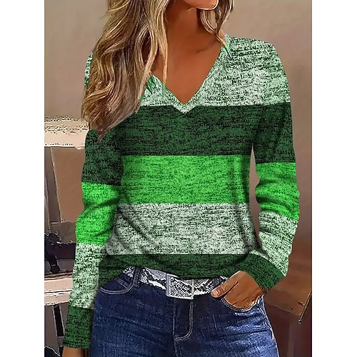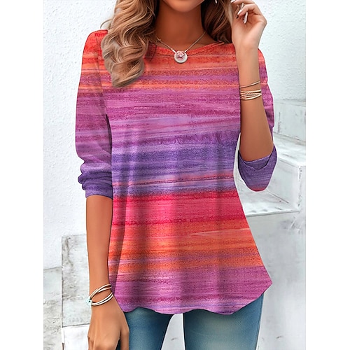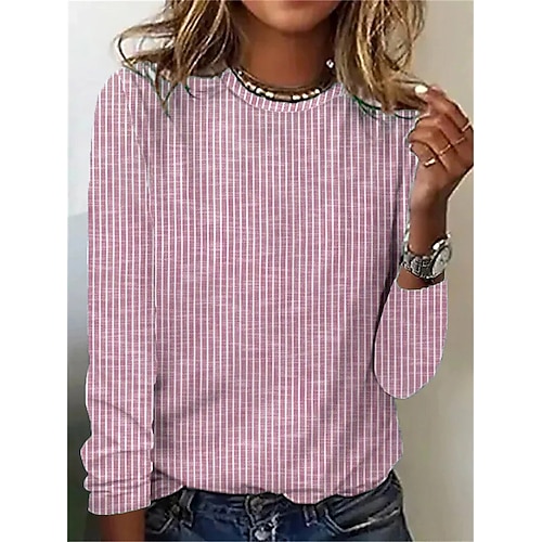 Per donna Maglietta Grafico Geometrico A righe Vintage Elegante Classico Manica Lunga Girocollo Top Regolari Quotidiano Stampato Blu Rosa Verde Primavera Autunno Inverno