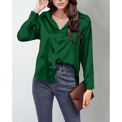 Per donna Camicia Elegant Elegante Raso/Satin Tinta unica Elegante Casual Manica Lunga Colletto a Camicia Top Regolari Quotidiano Uscire Bottoni Verde chiaro Rosa Blu Cammello Verde Primavera Autunno