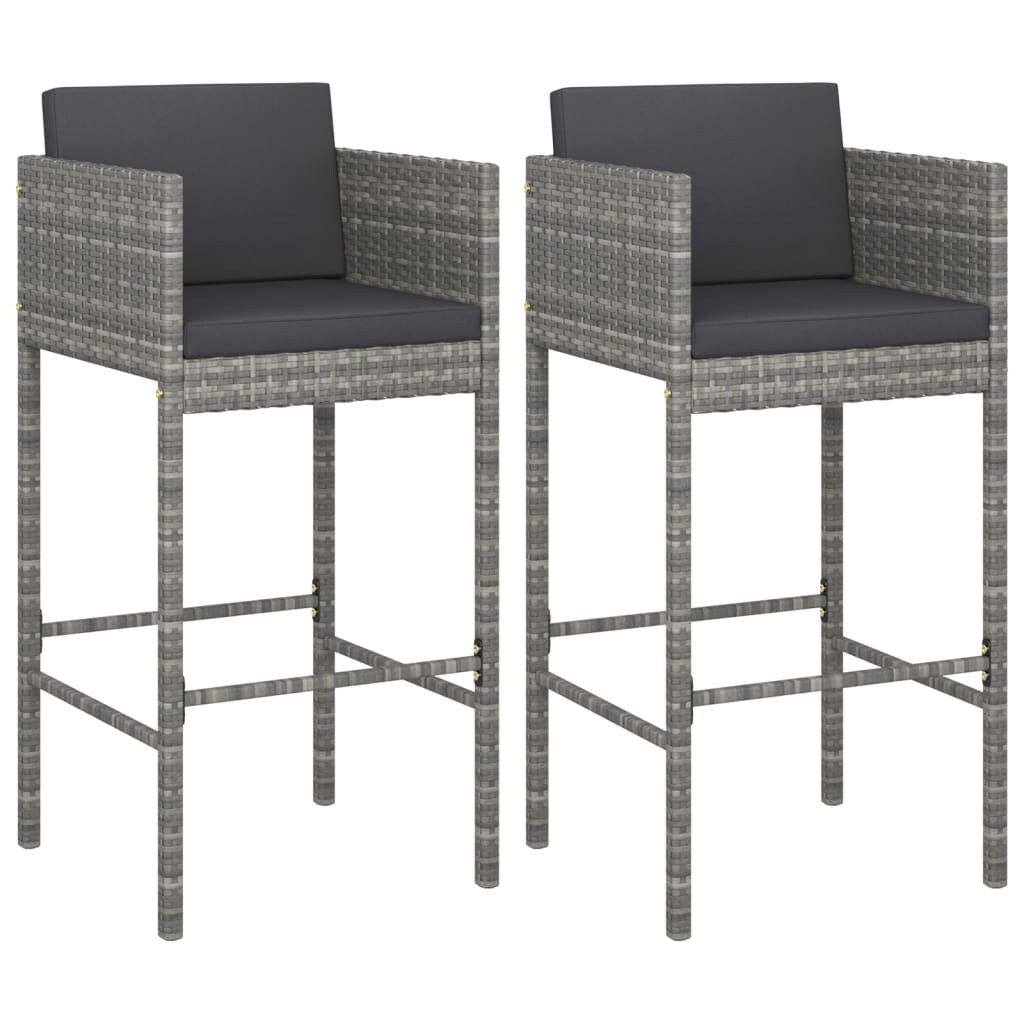 vidaXL Barhocker 2 Stk. mit Kissen Grau Poly Rattan
