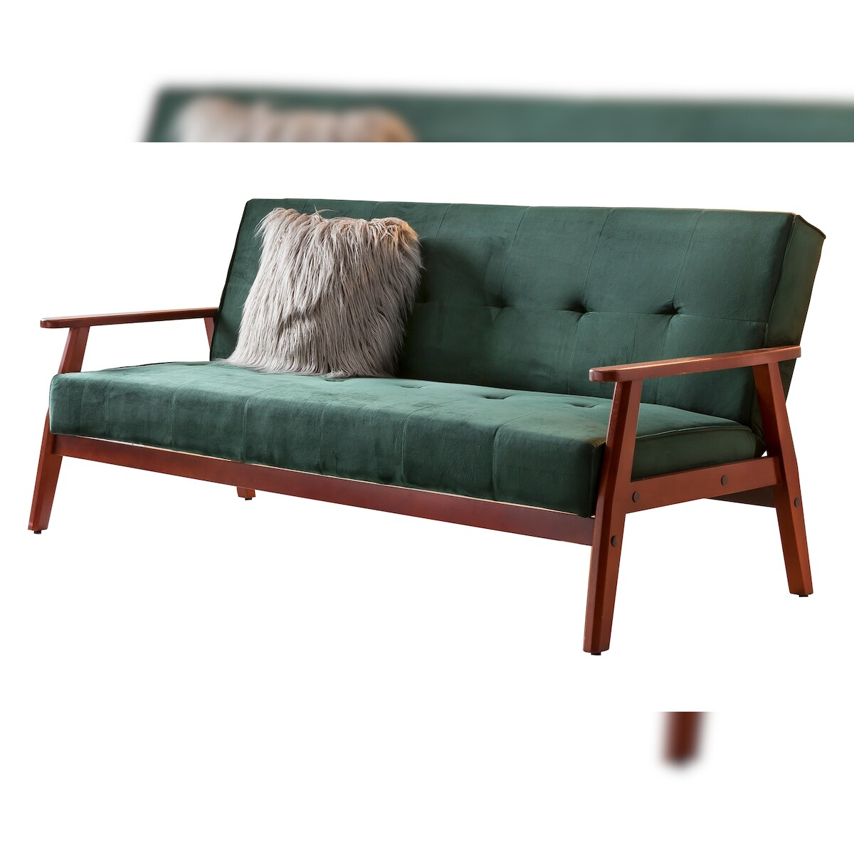 SalesFever Schlafsofa mit Armlehnen | 3 Funktionen | Stoffbezug Samt-Optik | Gestell Holz Eukalyptus| B 190 x T 85 x H 81 cm | tannengrün