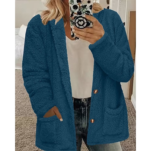 Per donna Cappotto Invernale Cappotto Teddy Caldo Confortevole Tasca Bottoni Elegante Moda Pelliccia Classico Semplice All'aperto Vacanza Casa Streetwear Regolare Senza colletto Vestibilità comoda