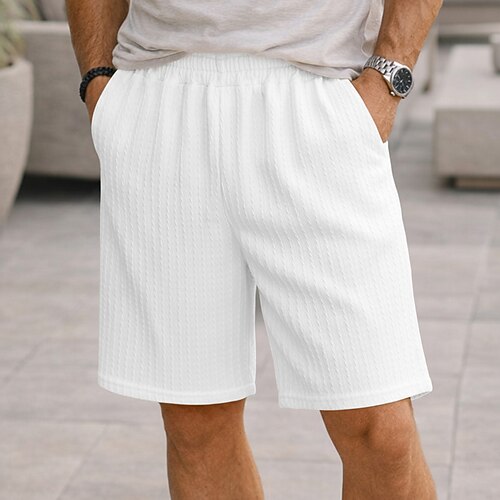 Per uomo Pantaloncini Estivi Shorts da Spiaggia Pantaloncini casual Maglia a trecce Pantaloncini strutturati Coulisse Elastico in vita Tinta unica Comodità Lunghezza al ginocchio Quotidiano