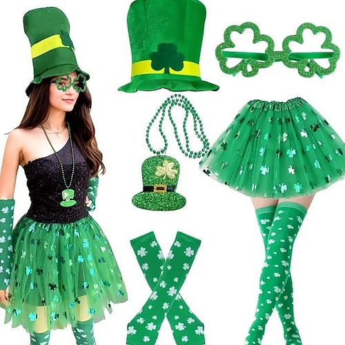 San Patrizio 2026 Trifoglio Irlandese fortunato Carnevale Mantello Costume di fantasia Scialli Innovativo Divertente Adulti Per donna Carnevale Giorno di San Patrizio Feste Costume di Carnevale facile