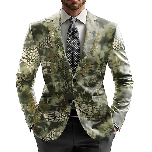 Per uomo Giacca blazer Formale Elegante Casual Quotidiano Tutte le stagioni 100% Poliestere Tessitura Grafico Stampa 3D Bottoni Confortevole Monopetto Giacca Verde chiaro Blu Verde