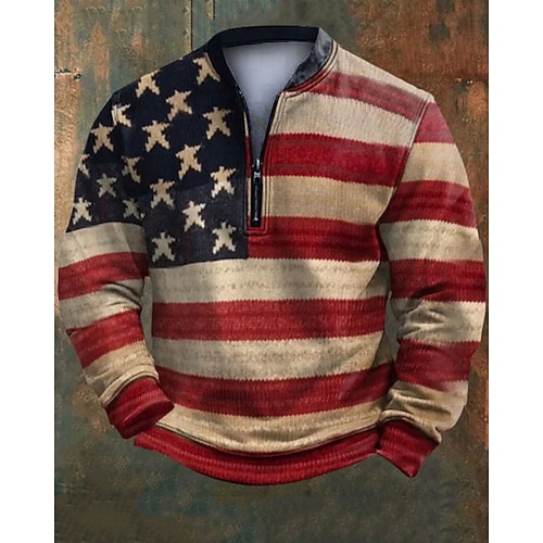 Per uomo Bandiera Americana Stampa Felpa Felpa con zip corta Felpe Manica Lunga Felpa Mezza zip Moderno Contemporaneo Vintage Retrò Stampa Ferie Uscire Festival Stampato Autunno Inverno