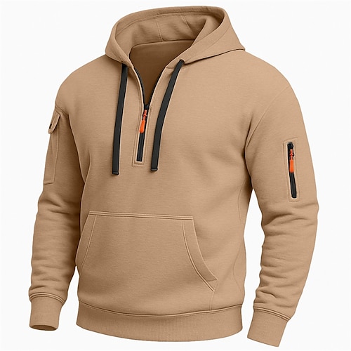 Per uomo Felpa con cappuccio Felpa con cappuccio e zip corta Felpa con cappuccio in pile Felpa con cappuccio tattica Nero Blu marino Cammello Grigio chiaro Grigio scuro Con Cappuccio Semplice Cerniera