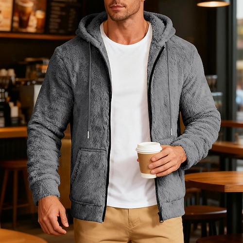 Per uomo Felpa con cappuccio Felpa con cappuccio a zip intera Felpa con cappuccio in pile Nero Blu marino Cachi Grigio Con Cappuccio Semplice Coulisse Con zip Tasca Sport Outdoor Quotidiano Ferie