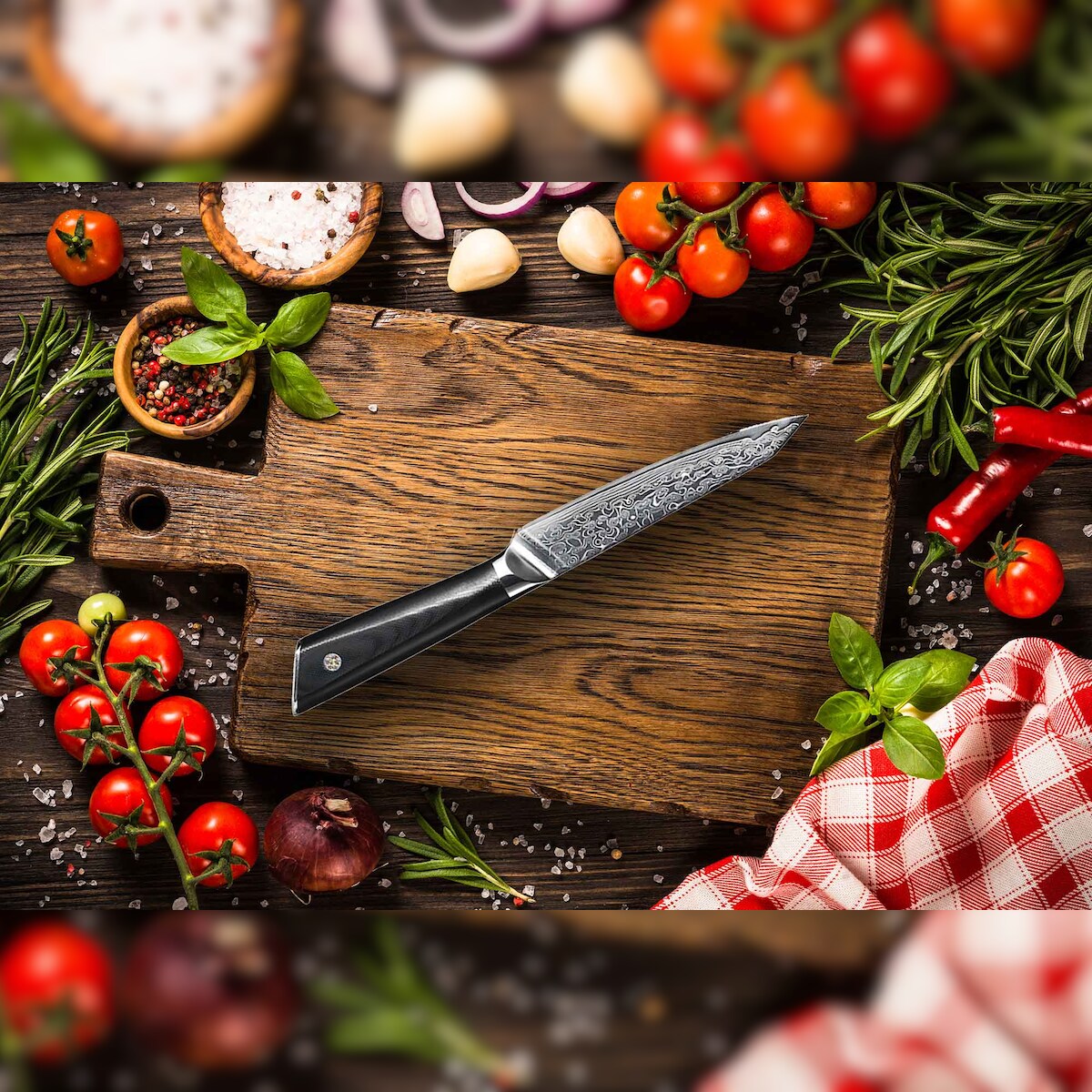Muxel Gemüsemesser Obstmesser oder Tomatenmesser - Das Küchenmesser mit 13 cm Carbon Damast-Klinge
