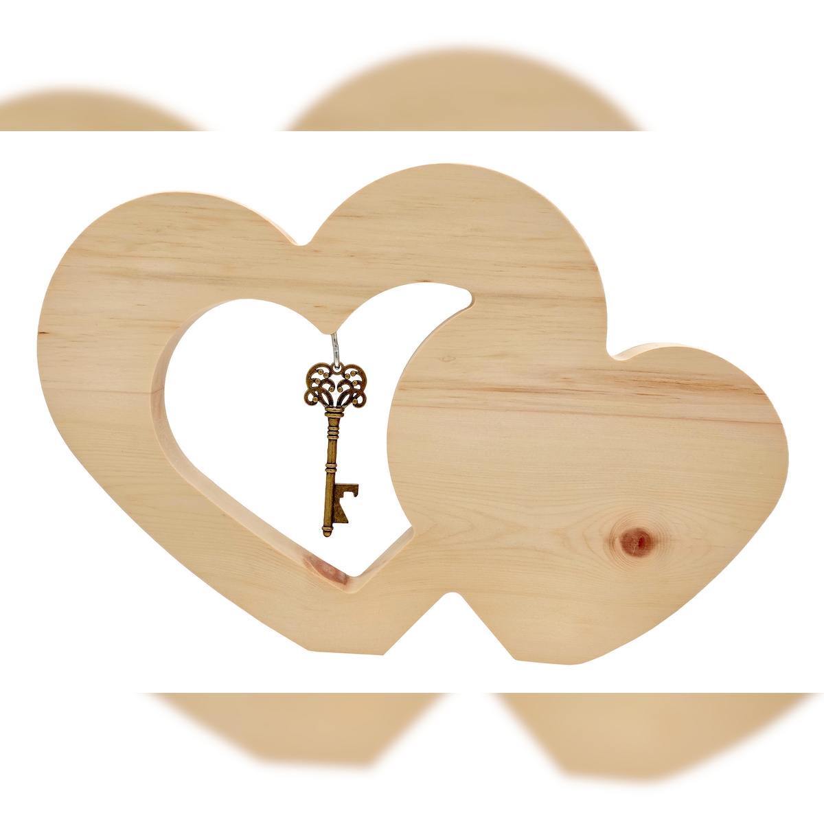 Erst-Holz Großes Doppelherz mit Schlüssel oder Stäben Zirbe unbehandelt massiv Dekoherz V-40.10-046
