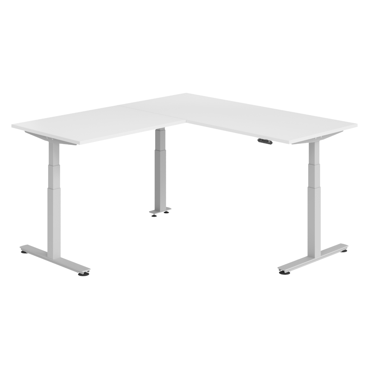 bümö Eckschreibtisch elektrisch höhenverstellbar L-Form: 180 x 200 cm in weiß, Gestell silber - Stehschreibtisch mit Memory-Steuerung, elektrischer